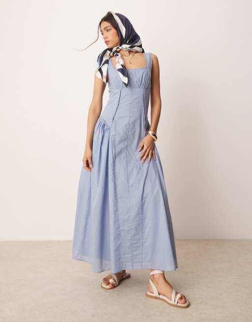 ASOS DESIGN – Letnia niebieska sukienka maxi z kwadratowym dekoltem i obniżonym stanem