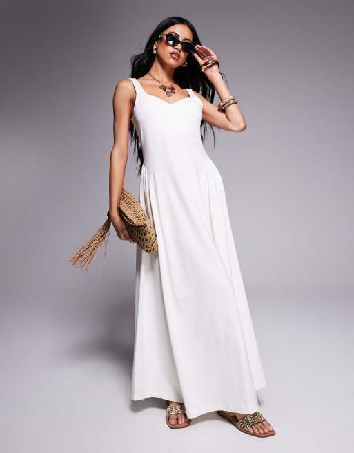 ASOS DESIGN – Letnia sukienka maxi z pełną spódnicą w kolorze złamanej bieli