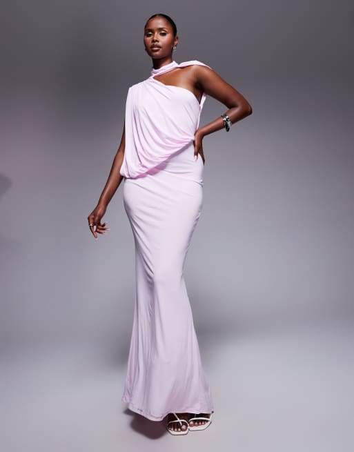 ASOS DESIGN – Liliowa drapowana sukienka maxi na jedno ramię z pelerynką