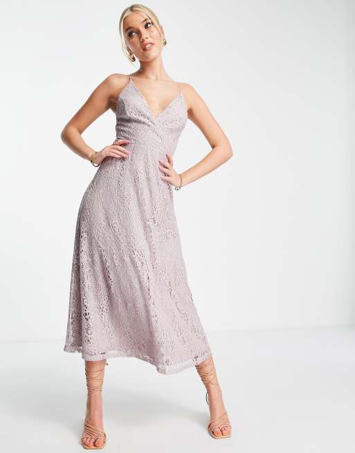 ASOS DESIGN – Liliowa koronkowa sukienka midi z wiązaniem na plecach