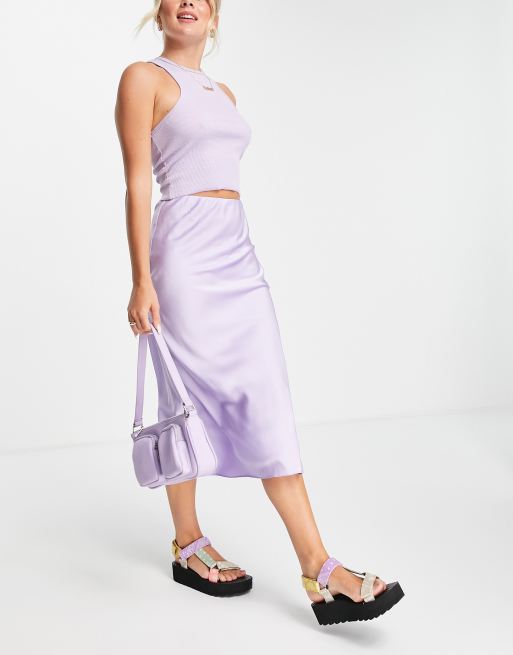 ASOS DESIGN – Liliowa spódnica midi z satyny ciętej ze skosu