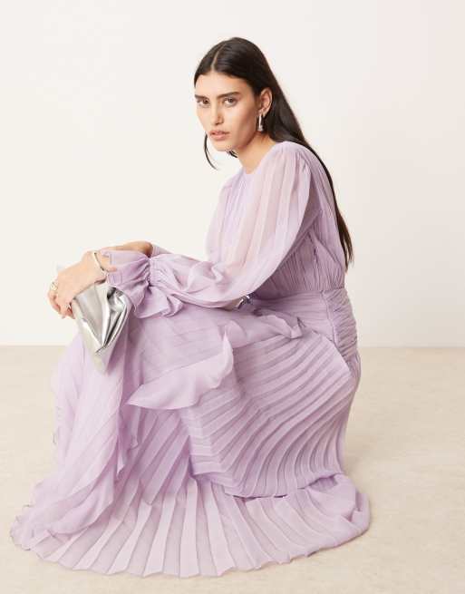 ASOS DESIGN – Liliowa sukienka maxi z marszczeniem w pasie i zabudowanym dekoltem