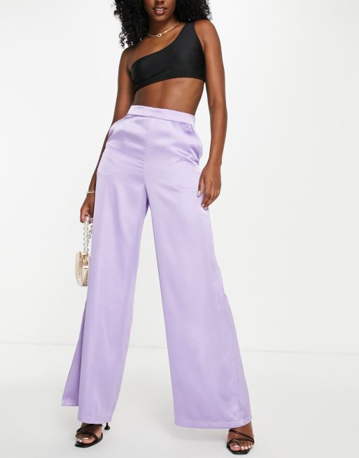 ASOS DESIGN – Liliowe satynowe spodnie z szerokimi nogawkami
