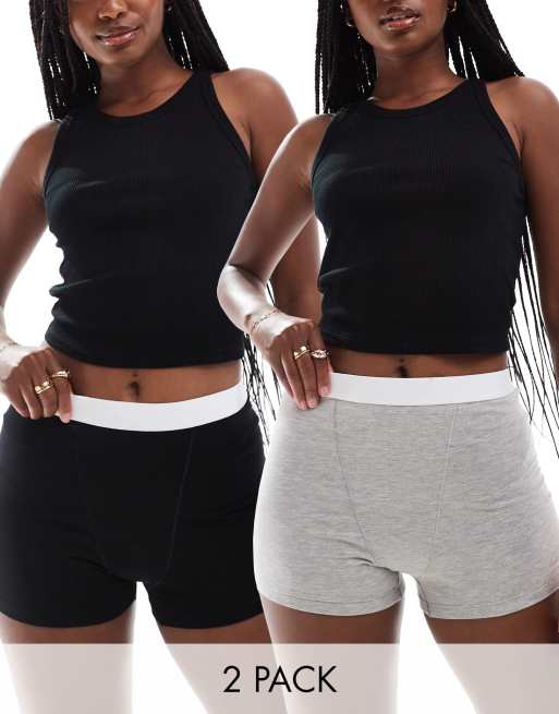 ASOS DESIGN – Lillie – Zestaw 2 par bawełnianych bokserek z wysokim stanem w kolorach czarnym i szarym