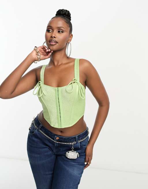 ASOS DESIGN – Limonkowozielony festiwalowy gorset z brokatowego materiału