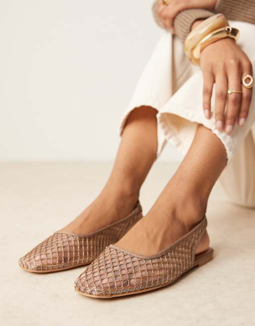 ASOS DESIGN – Lisse – Plecione brązowoszare balerinki z okrągłymi noskami i paskami za piętą