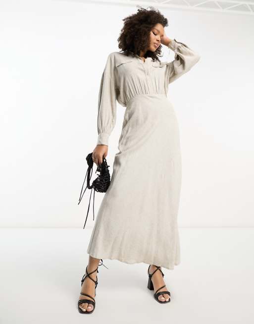ASOS DESIGN – Lniana sukienka koszulowa maxi w stylu utility w naturalnym kolorze