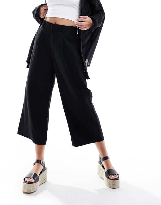ASOS DESIGN – Lniane kuloty dad w czarnym kolorze