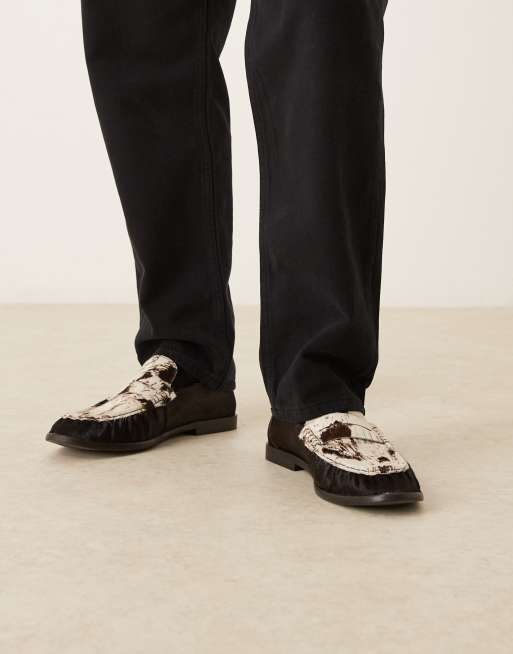 ASOS DESIGN – Loafersy penny ze wzorem w krowie łaty