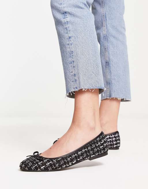 ASOS DESIGN – Locus – Biało-czarne tweedowe balerinki z okrągłymi noskami