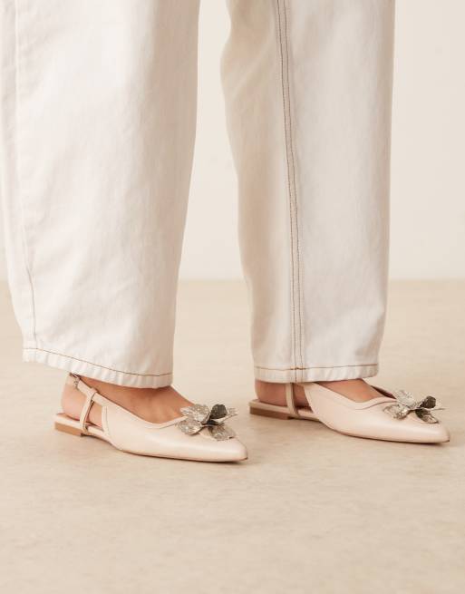 ASOS DESIGN – Lore – Balerinki z paskiem na pięcie w kolorze złamanej bieli z kwiatem