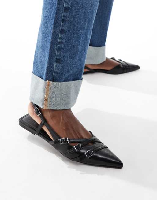 ASOS DESIGN – Lotto – Czarne balerinki z paskiem na pięcie