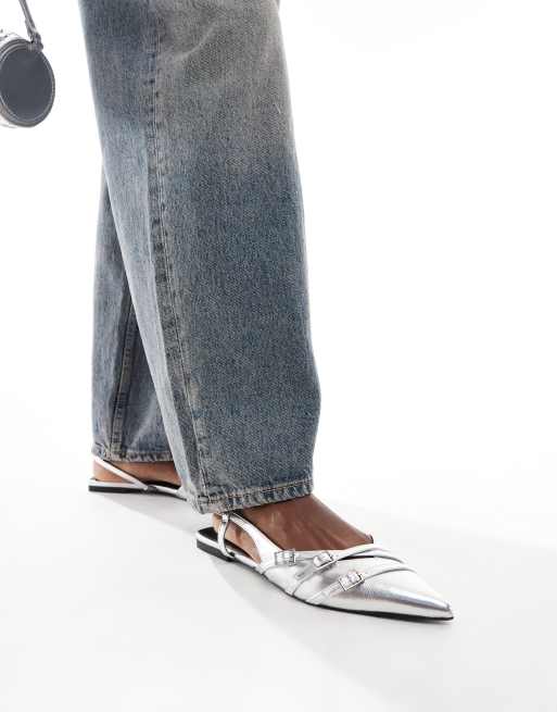 ASOS DESIGN – Lotto – Srebrne balerinki z paskiem na pięcie