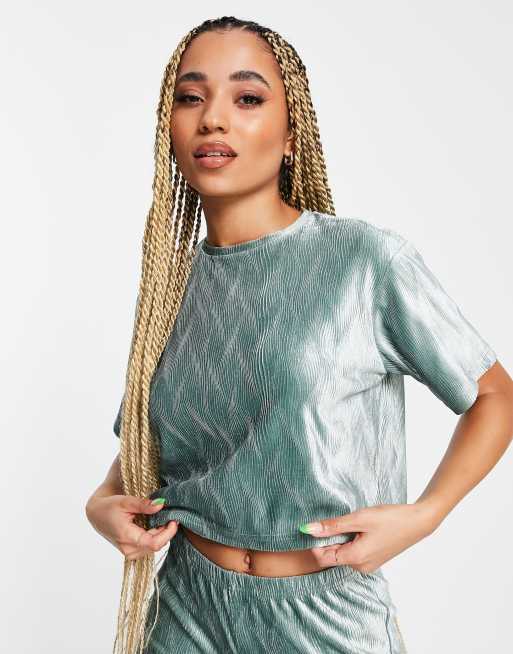 ASOS DESIGN Lounge – Mieszaj i łącz – Szałwiowozielona welurowa koszulka z plisami