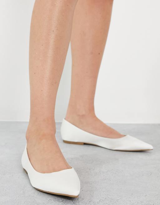 ASOS DESIGN – Lucky – Spiczaste satynowe balerinki w kolorze kości słoniowej