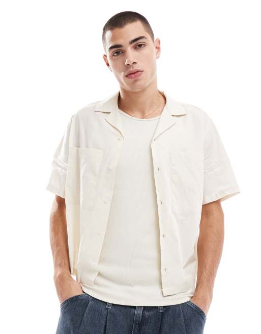 ASOS DESIGN – Luźna pudełkowa koszula z kieszeniami z przodu w neutralnym kolorze