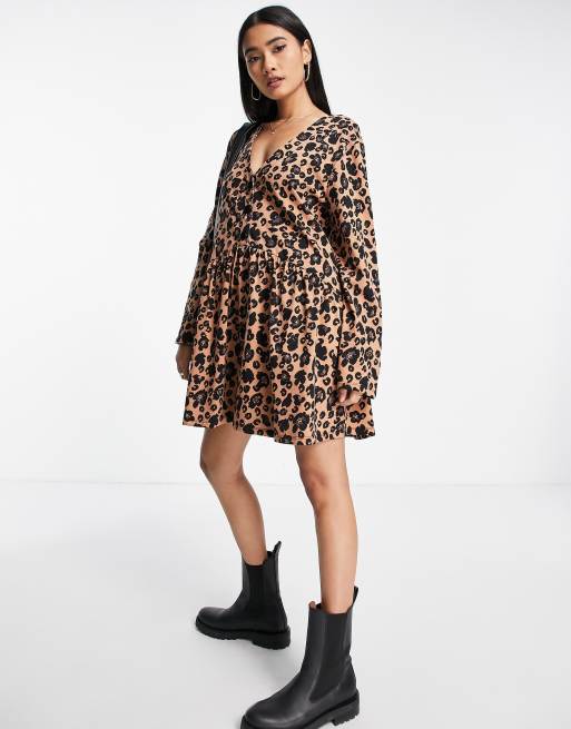ASOS DESIGN – Luźna sukienka mini z guzikami, długimi rękawami i wzorem w panterkę