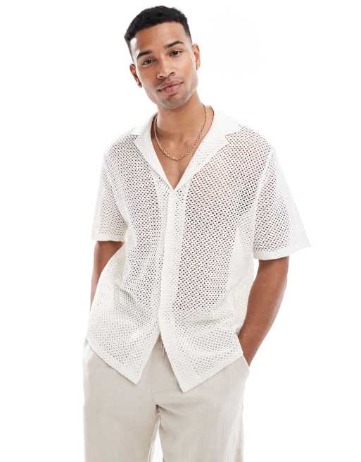 ASOS DESIGN – Luźna szydełkowana koszula w kolorze ecru z kołnierzykiem kubańskim