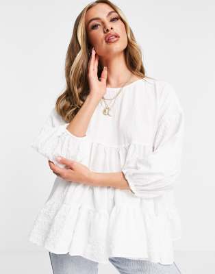 ASOS DESIGN – Luźny kaskadowy top z teksturowanego materiału w kolorze kości słoniowej