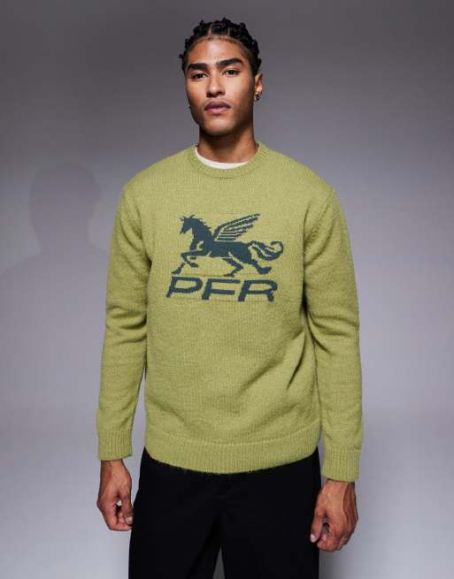 ASOS DESIGN – Luźny sweter w kolorze khaki z haftowanym motywem na piersi