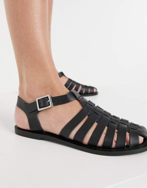 ASOS DESIGN – Marina – Czarne płaskie buty ze skóry w stylu rustykalnym