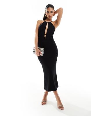 ASOS DESIGN – Marszczona czarna sukienka midi z dekoltem typu halter
