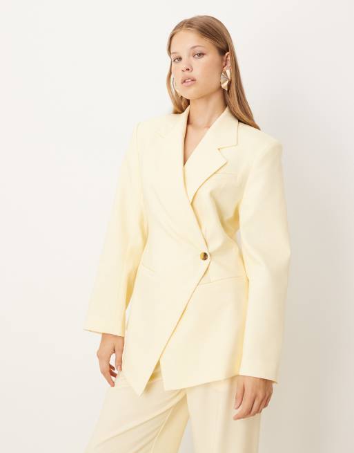 ASOS DESIGN – Maślana elegancka marynarka zbierana w talii z rozszerzonym dołem
