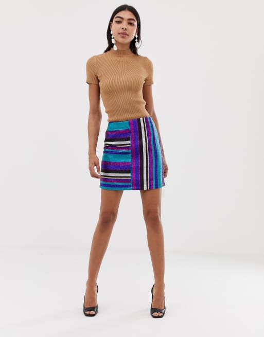 ASOS DESIGN – Mataliczna spódnica mini w tęczowe paski