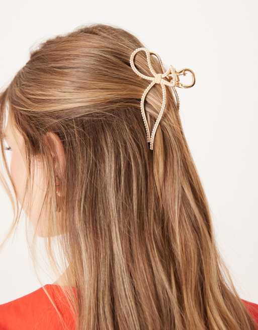 ASOS DESIGN – Metalowa klamra do włosów w kształcie kokardki z perełkami