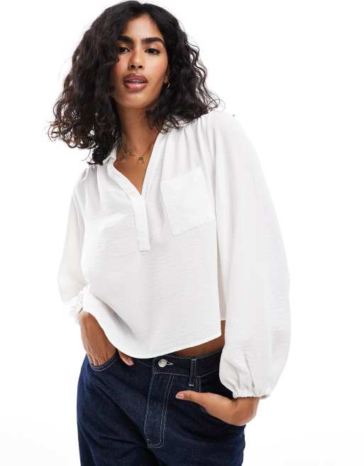 ASOS DESIGN – Miękka bluzka w kolorze kości słoniowej z dekoltem w szpic i ozdobną kieszenią