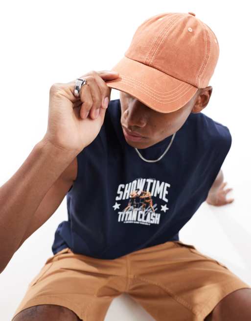 ASOS DESIGN – Miękka czapka z daszkiem i kontrastowymi przeszyciami w spranym kolorze pomarańczowym
