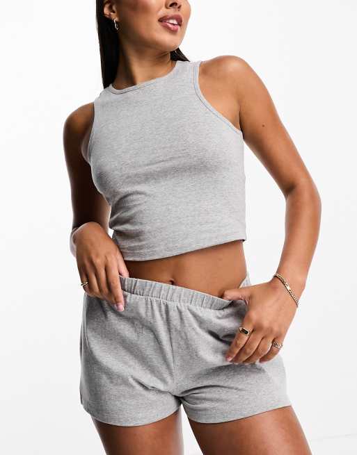 ASOS DESIGN – Mieszaj i łącz – Bawełniany podkoszulek od piżamy o fasonie bokserki w szarym melanżowym kolorze