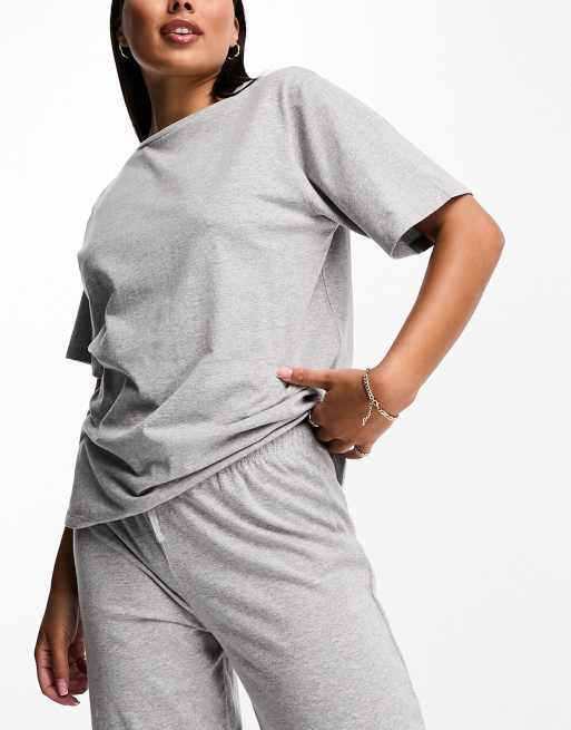ASOS DESIGN – Mieszaj i łącz – Bawełniany T-shirt oversize od piżamy w szarym melanżowym kolorze