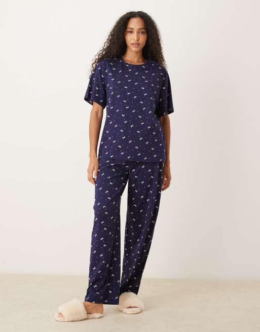 ASOS DESIGN – Mieszaj i łącz – Granatowe bawełniane spodnie od piżamy w kokardki