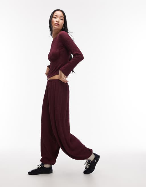 ASOS DESIGN – Mieszaj i łącz – Jagodowe fakturowane spodnie z balonowymi nogawkami