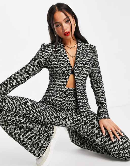 ASOS DESIGN – Miętowa dżersejowa marynarka w stylu lat 00. w geometryczny wzór