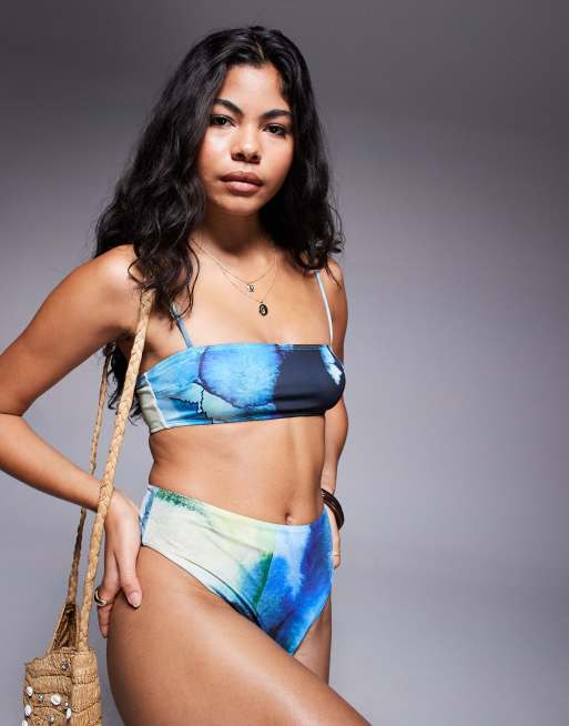ASOS DESIGN – Mina – Góra od bikini bandeau na cienkich ramiączkach w abstrakcyjny wzór