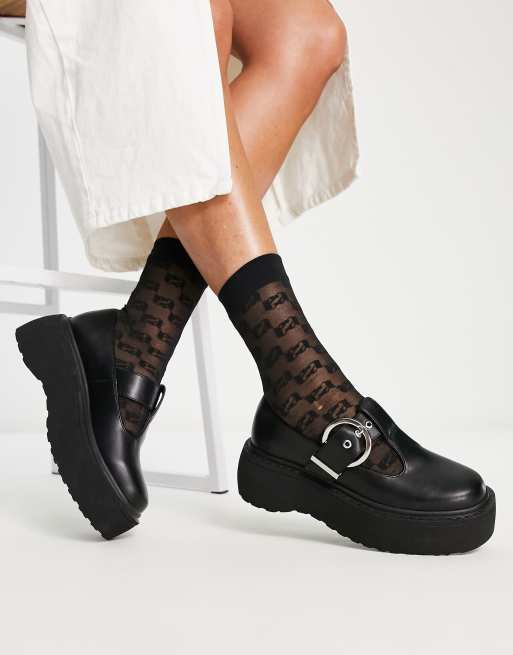 ASOS DESIGN – Morgana – Czarne buty Mary Jane na grubej płaskiej podeszwie