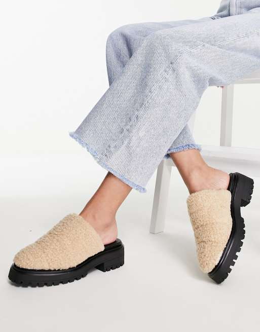 ASOS DESIGN – Mount – Płaskie wyściełane mule bez pięt z kożuszka w naturalnym kolorze