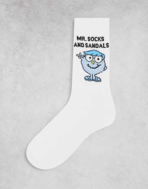 ASOS DESIGN – Mr Men – Białe sportowe skarpetki z napisem "Mr Socks And Sandals"