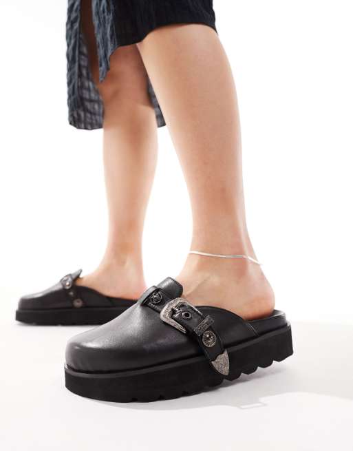 ASOS DESIGN – Mystic – Czarne klapki bez pięt ze skóry premium
