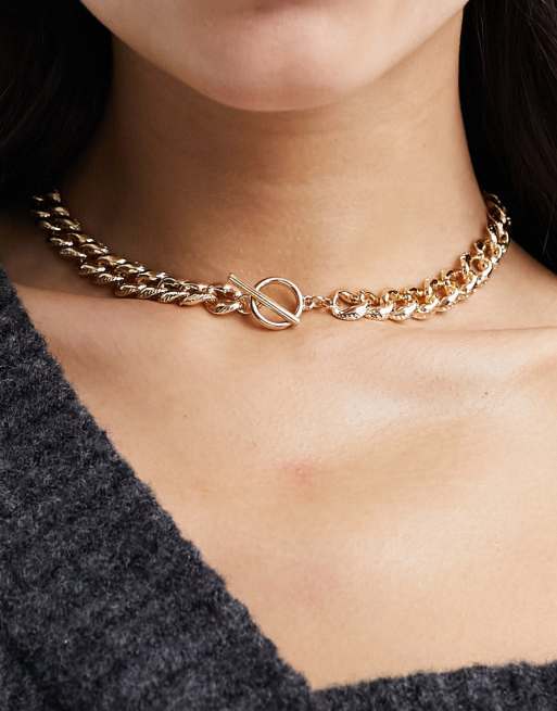 ASOS DESIGN – Naszyjnik łańcuszkowy w odcieniu złota z zapięciem T
