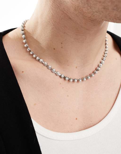 ASOS DESIGN – Naszyjnik łańcuszkowy ze sztucznymi perłami w odcieniu srebra
