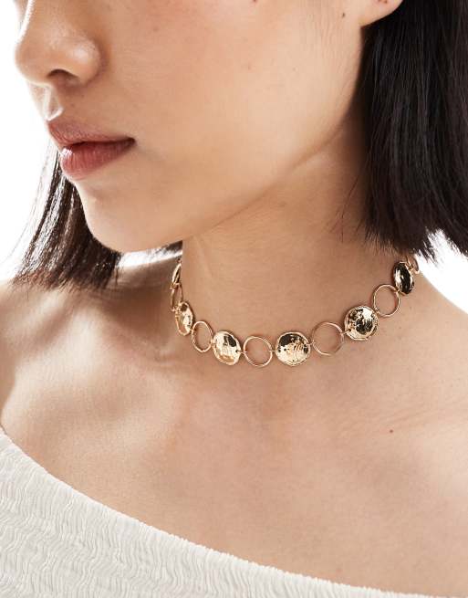 ASOS DESIGN – Naszyjnik choker z młotkowanymi dyskami w odcieniu złota