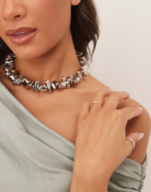 ASOS DESIGN – Naszyjnik typu choker z szarych koralików z efektem stopienia