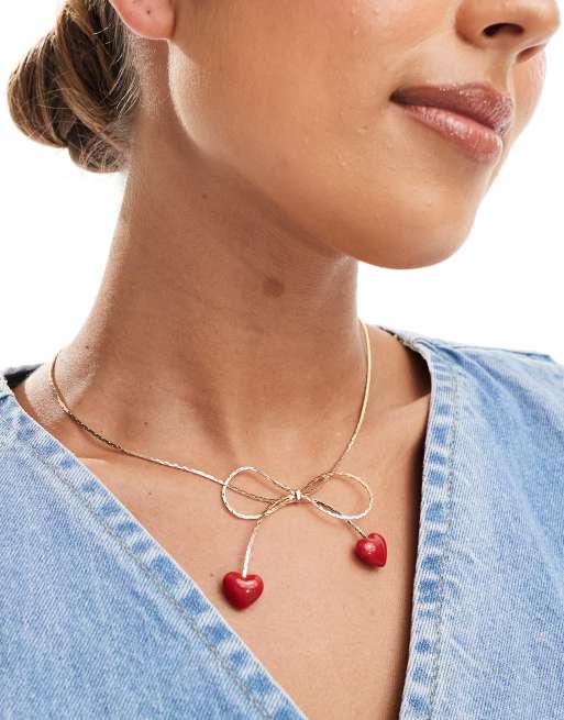 ASOS DESIGN – Naszyjnik w złotym kolorze z ozdobną kokardką i wisienkami