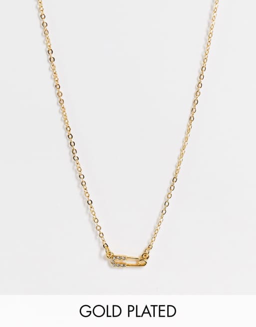 ASOS DESIGN – Naszyjnik z małą agrafką powlekany 14-karatowym złotem
