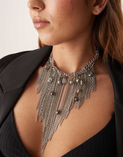 ASOS DESIGN – Naszyjnik z różnych łańcuszków w kolorze srebra z perełkami