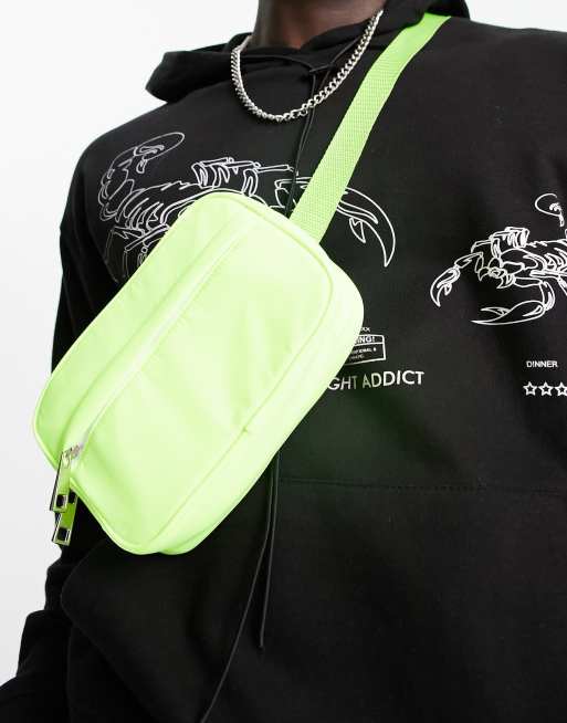 ASOS DESIGN – Neonowozielona nerka-saszetka crossbody z kieszenią na suwak