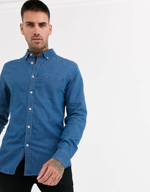 ASOS DESIGN – Niebieska dopasowana denimowa koszula ze stretchem